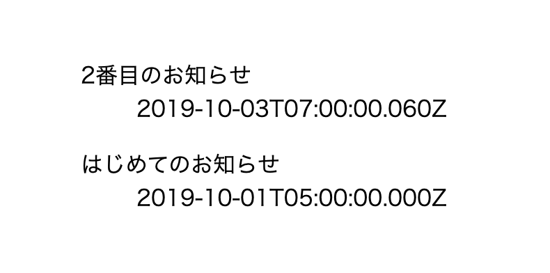 上記のコードはdataという配列を展開してリストを生成し、公開日(publishedTime)とタイトル(title)を表示させる実装になります。