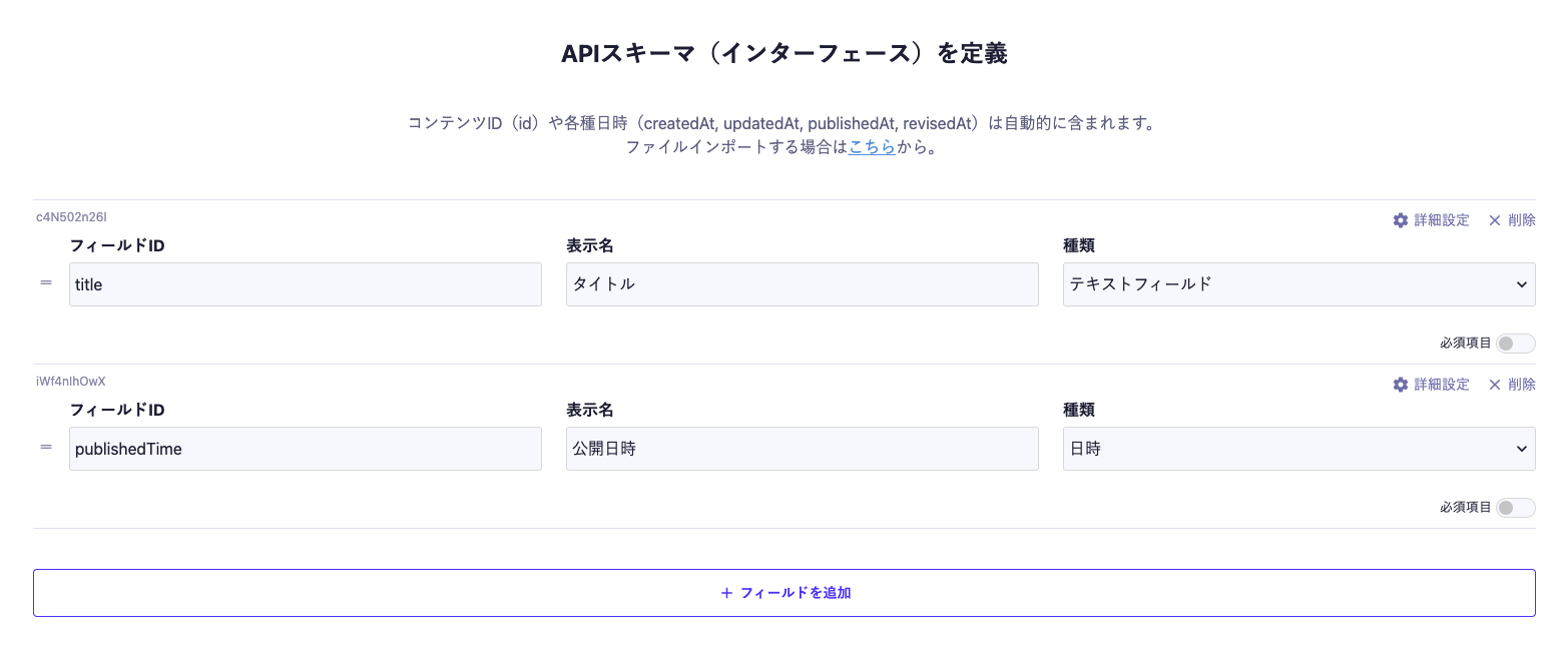 microCMSを使ってAPIを用意します。