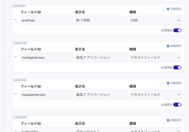 }このAPIを利用し、アプリ側のバージョンや日時と比較して強制アップデートが必要を判断します。
