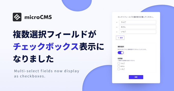 真偽値とセレクトフィールドの初期値を設定できるようになりました