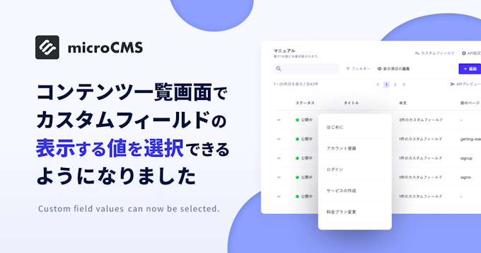 コンテンツ一覧画面でカスタムフィールドの表示する値を選択できるようになりました