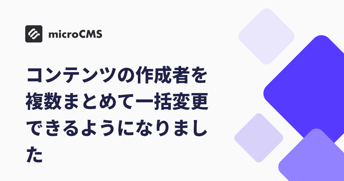 たとえば、担当者が変更となった際に、コンテンツの作成者を別のメンバーへ一括で変更するといったシーンでもご活用いただけます。