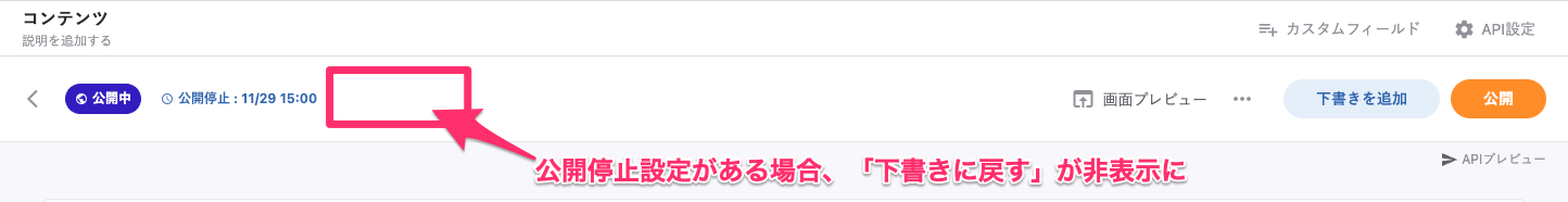 コンテンツのステータスが「下書き」状態の場合、公開停止予約が単独では設定ができないようになりました。