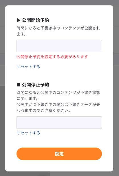 公開開始予約がされていない場合、停止予約ができなくなります。
