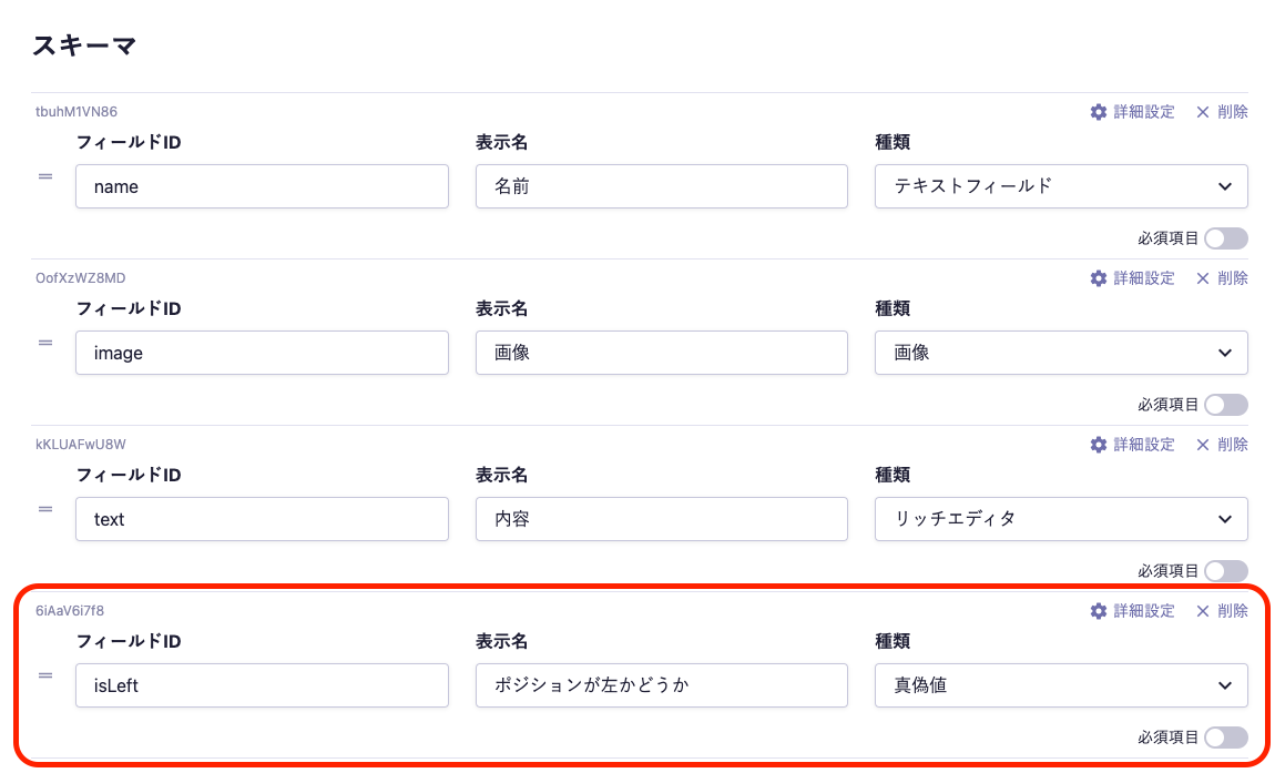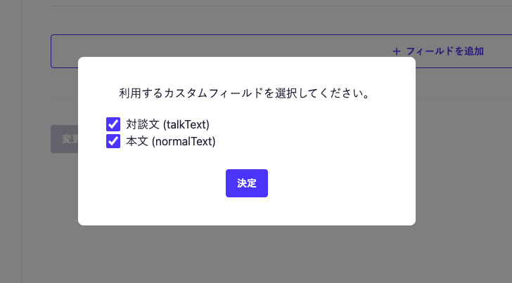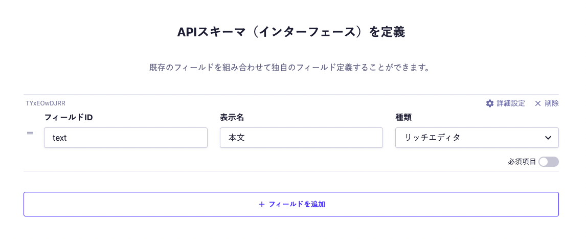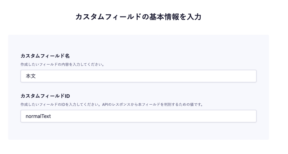 まずは、本文(normalText)のカスタムフィールドを作成します。
