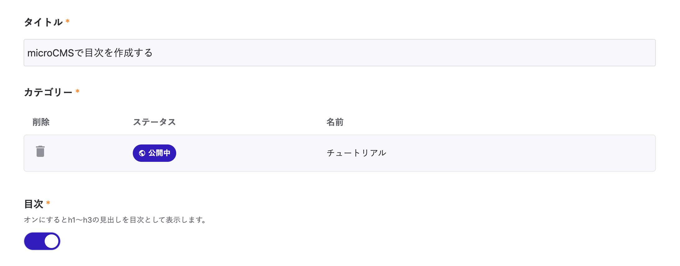 本microCMSブログにもいつの間にかに目次が付いたのに気付きましたか?