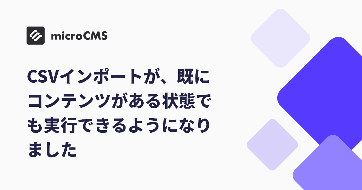 この度、APIにコンテンツがある状態でも、CSVインポートで新たなコンテンツを追加できるようになりました。
