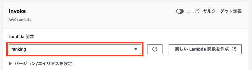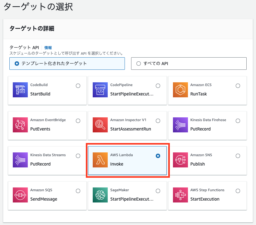 3. ターゲットの選択でAWS Lamda Invokeを選択