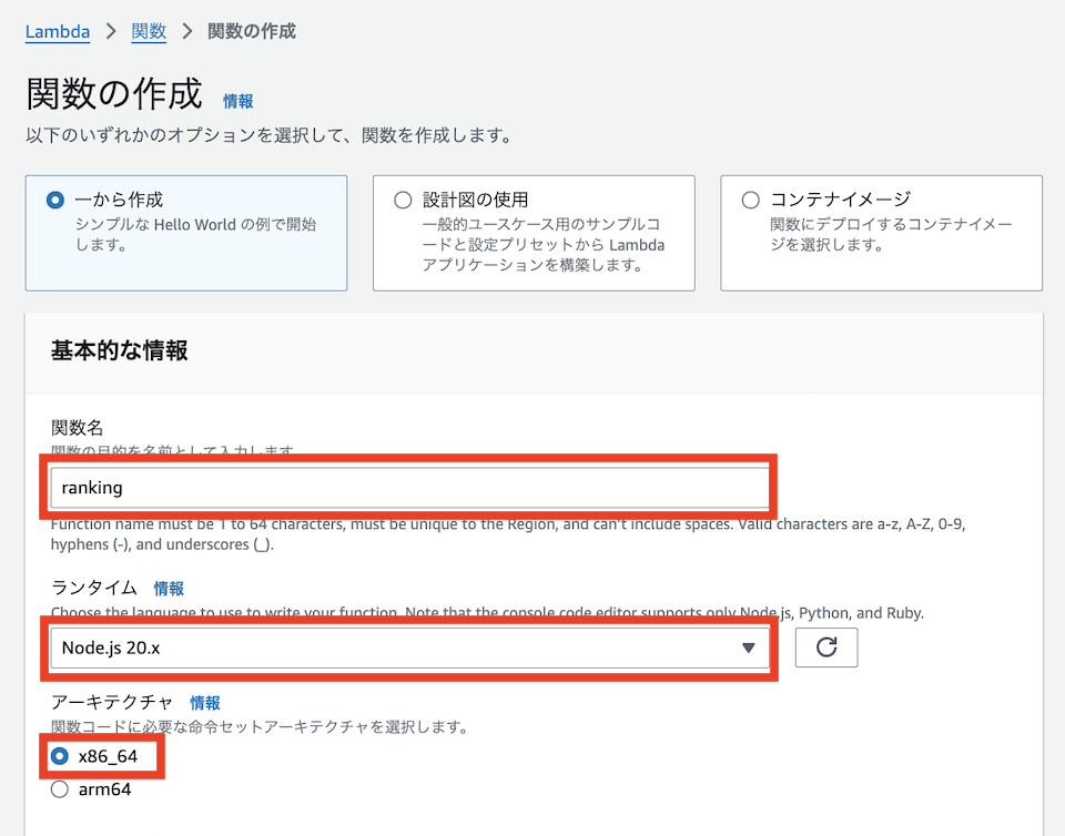 スクリプトの実行環境: AWS Lamda(Node.js)