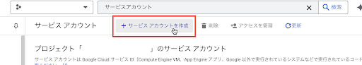 2. サービスアカウントページの「+サービスアカウントを作成」をクリック