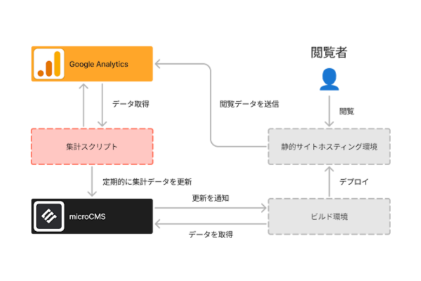 今回はmicroCMS上にランキング用のAPIを作成し、定期的にGA4の閲覧データをmicroCMSに登録し、更新タイミングでビルドを行うという方法で実装を行います。