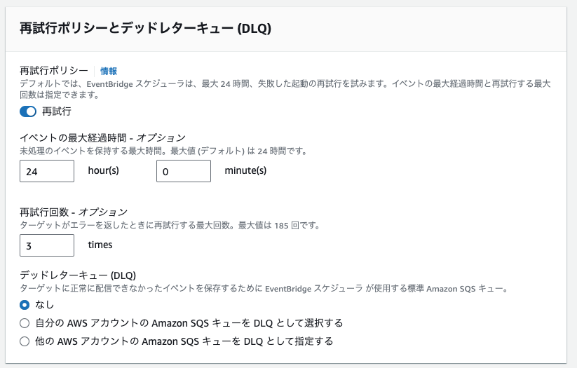5. その他再試行の回数(デフォルト185回)などお好みで設定し、作成を完了