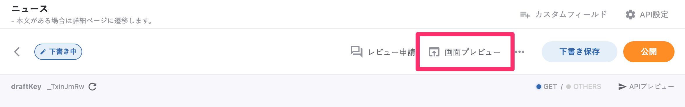 microCMSではコンテンツが「下書き中」ステータスの場合、draftKeyが発行されます。