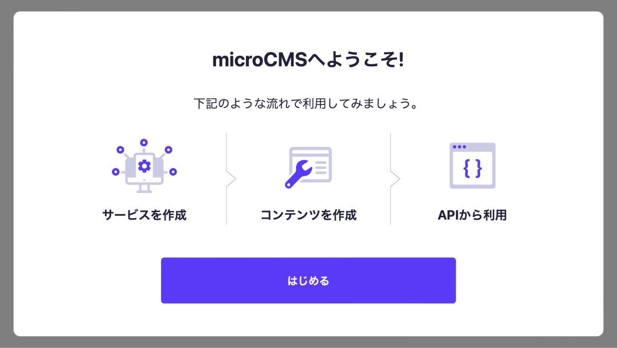 サービスはmicroCMSの中で最上位の概念です。サービス > API > コンテンツ、という階層構造になっています。