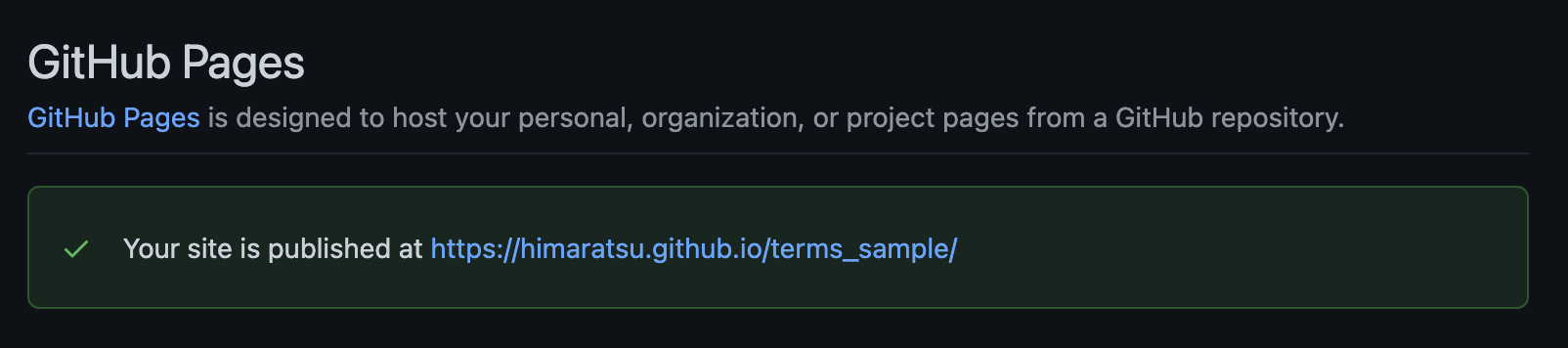 ブランチを選ぶとGitHub Pagesが公開され、URLが生成されます。