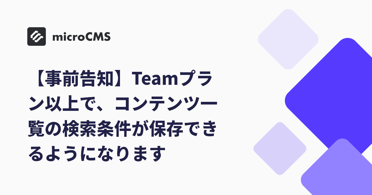 この度、2025年12月17日(水)に予定しておりますアップデートにて、Team以上のプランをご利用の場合に、コンテンツ一覧画面での検索条件を保存できるようになる「ビュー」機能をリリースいたします。