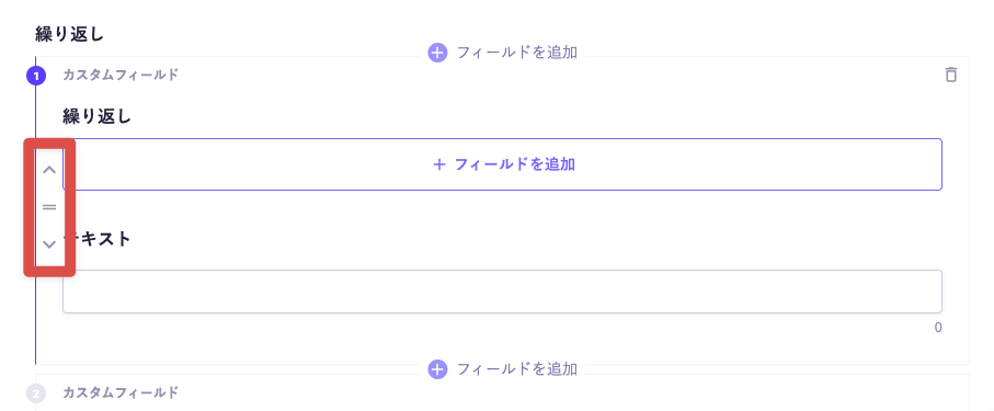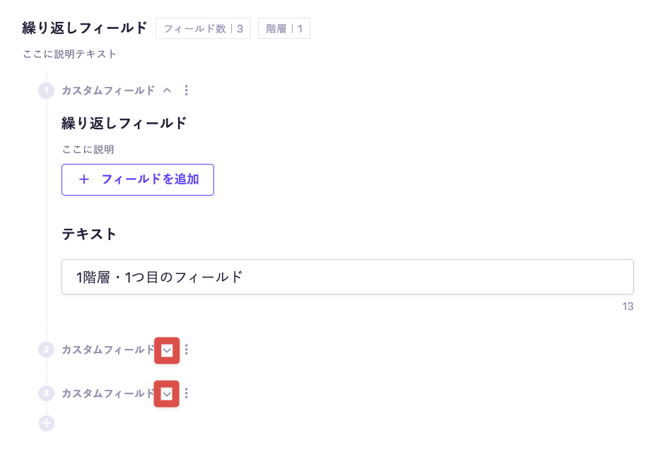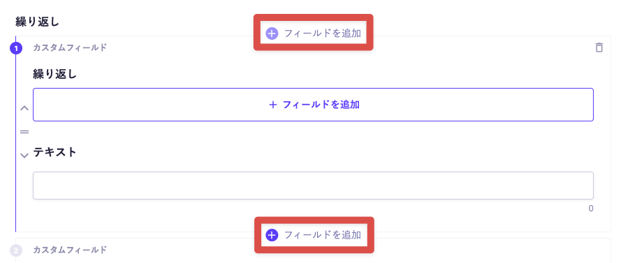 各フィールドの上下の [+フィールドを追加] ボタンで、同じ階層にフィールドを追加します。
