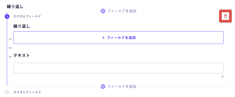 各フィールド右上のゴミ箱アイコンからフィールドを削除します。