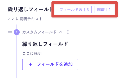 対象の階層に追加されたフィールドの数と階層を表示し、どのフィールドを編集しているかがわかりやすくなります。