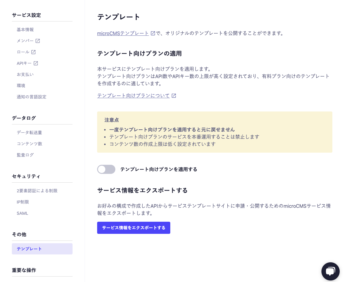 「サービス設定 > その他 > テンプレート」よりプランの適用が可能です。