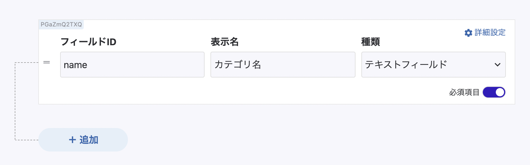 APIスキーマはカテゴリ名の1つのフィールドを定義します。