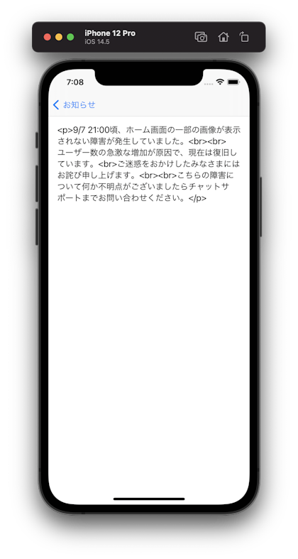 お知らせ画面はアプリの更新情報やキャンペーン、そして障害情報などをユーザーに届けられる大事な機能です。