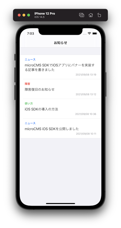 この記事ではiOSアプリにお知らせ画面を実装していきます。