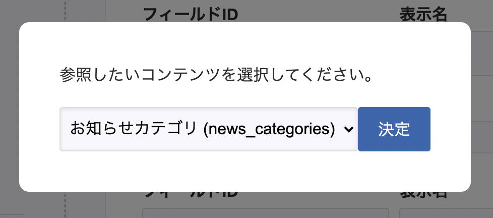 参照先を選択するポップアップが表示されるので「お知らせカテゴリ」を選択しましょう。