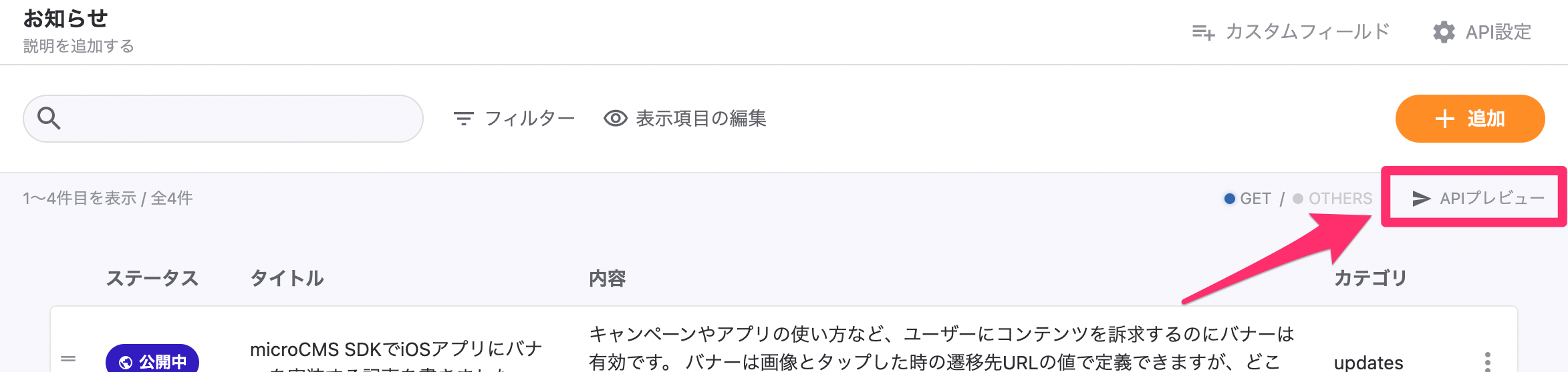 管理画面からお知らせ用のAPIを作成する
