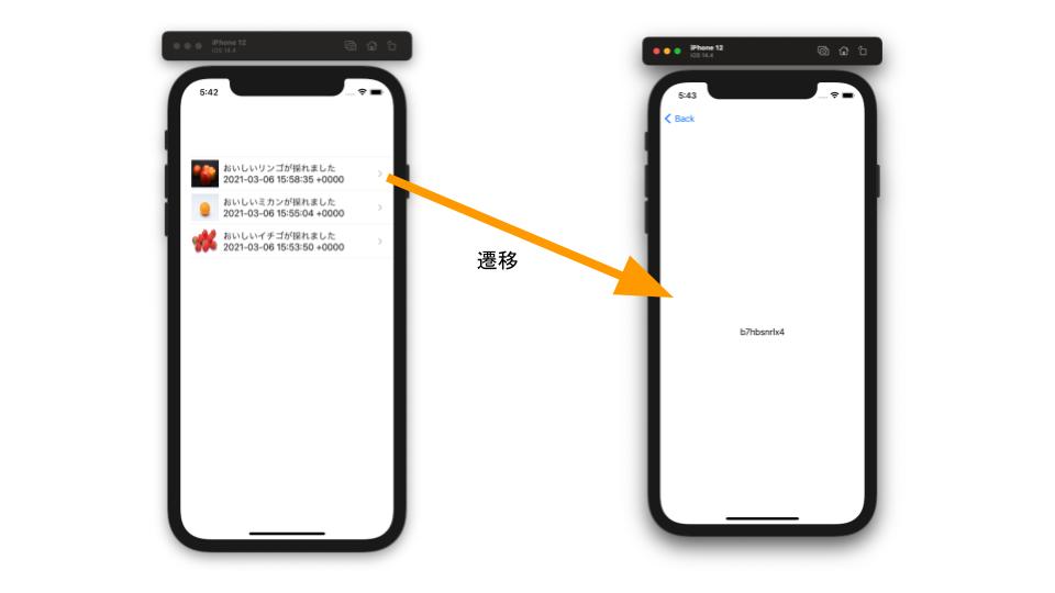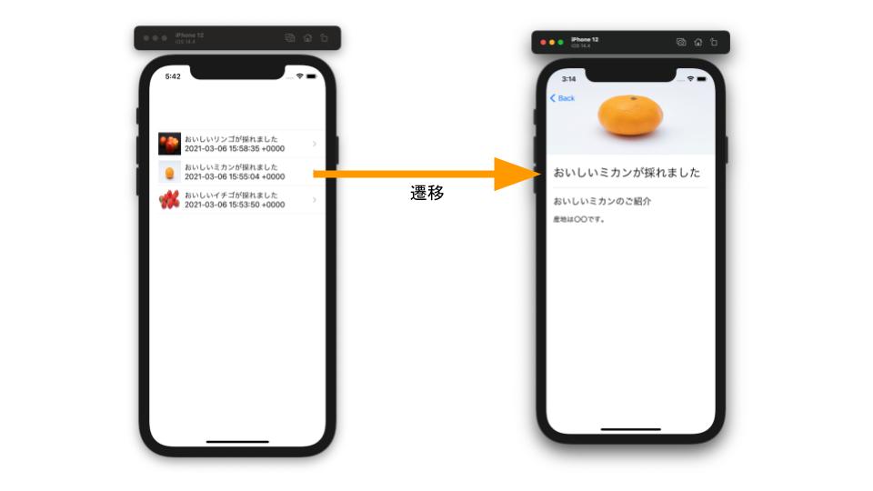 ここまでの実装で一覧画面から詳細画面への遷移を実装できました。