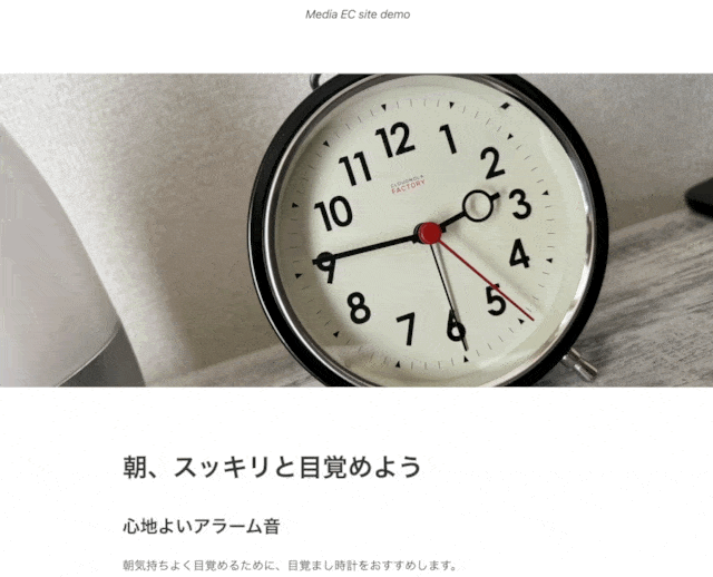 記事を読んでいて気になった商品は「カートに追加」ボタンで購入動線へ遷移させ、スムーズな購入体験を実現できます。