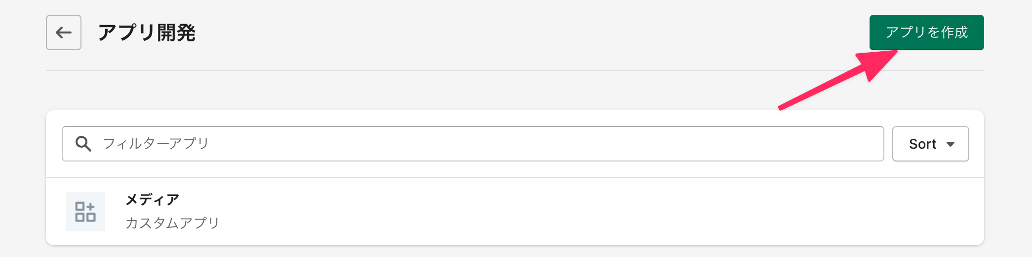 アプリ開発のページで、右上の「アプリを作成」ボタンを選択します。