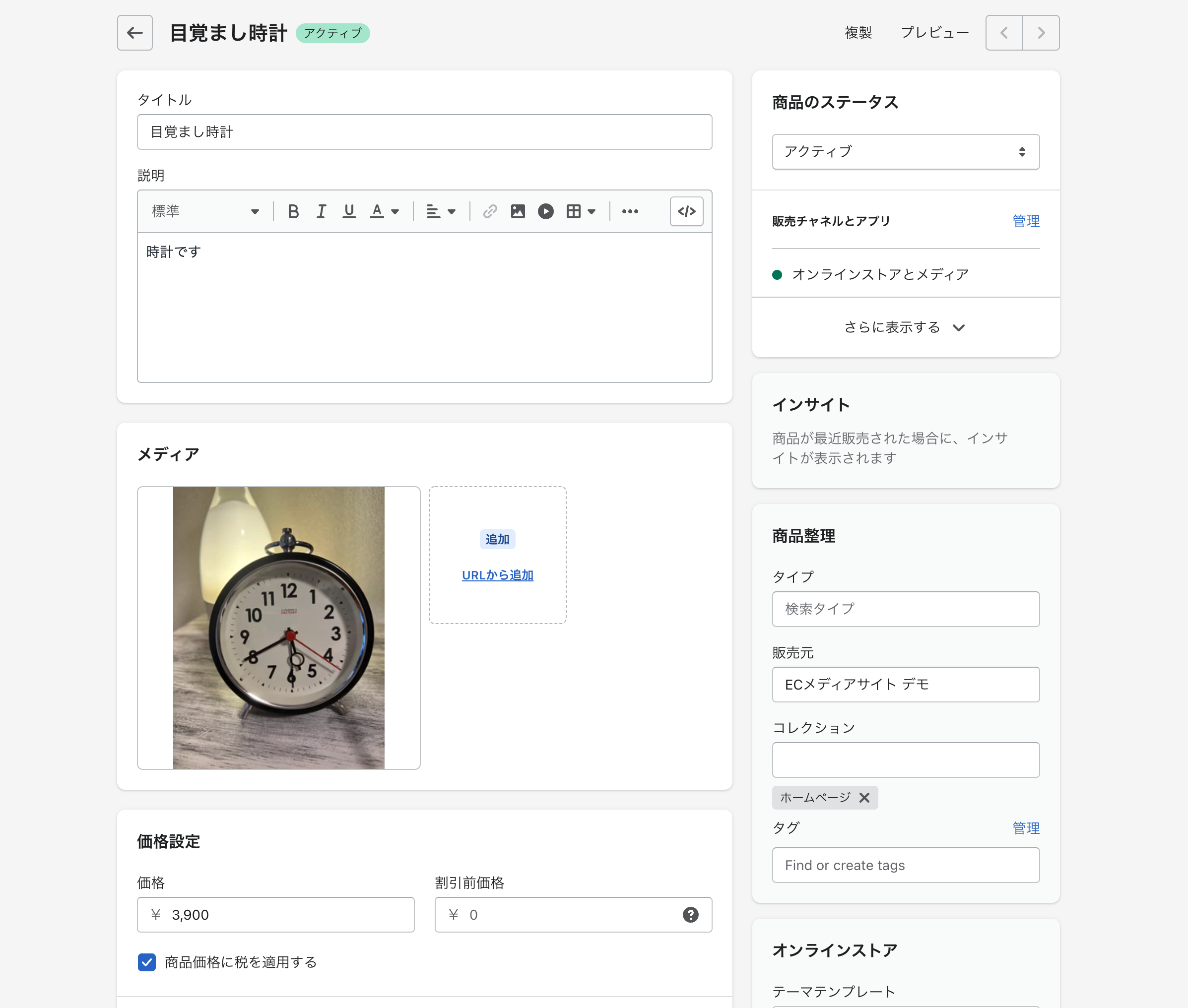 ここで登録した商品の情報をメディアECサイトで表示することを目指します。