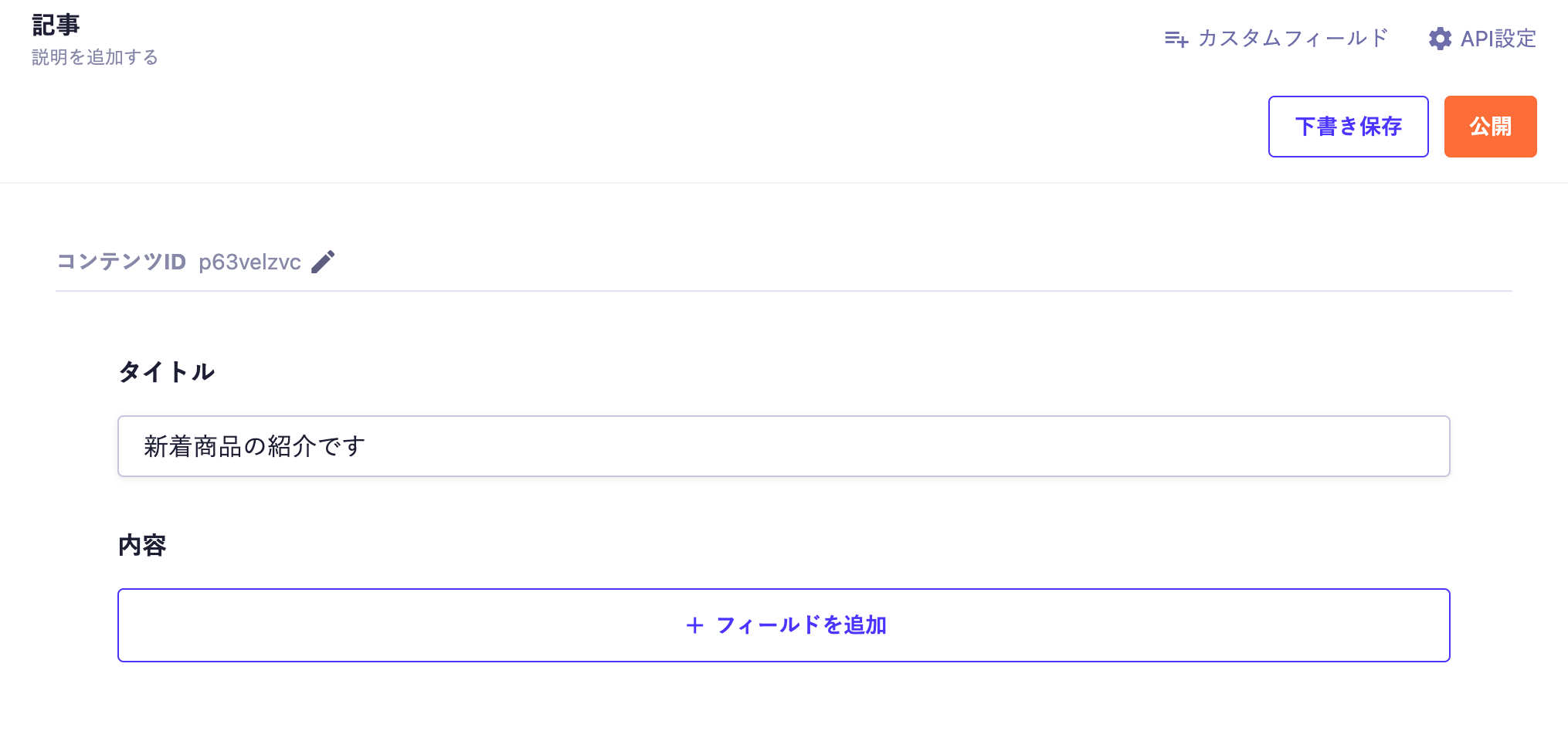 このフィールドを組み合わせ、柔軟な構造を持ったコンテンツを作成できます。