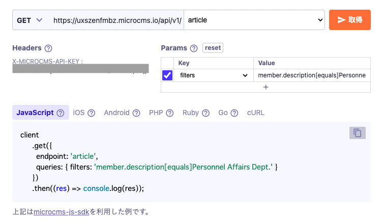 ※レスポンスとして返却される領域(data)については、現状はクエリをご利用いただくことができません(参考)。