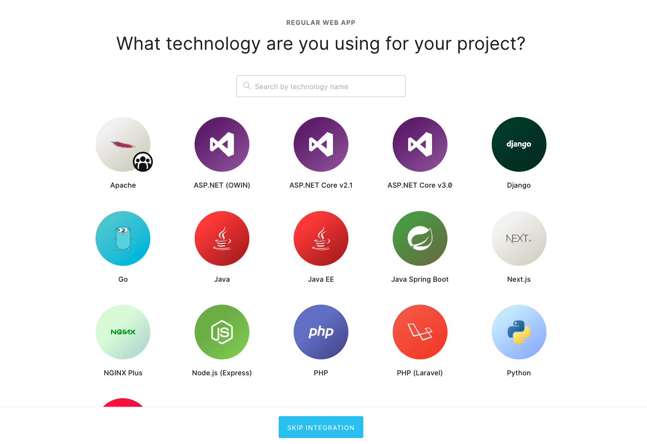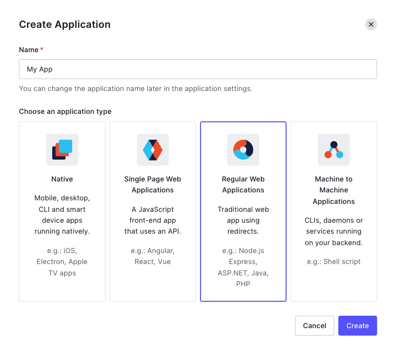 application typeは、「Regular Web Applications」を選択してください。