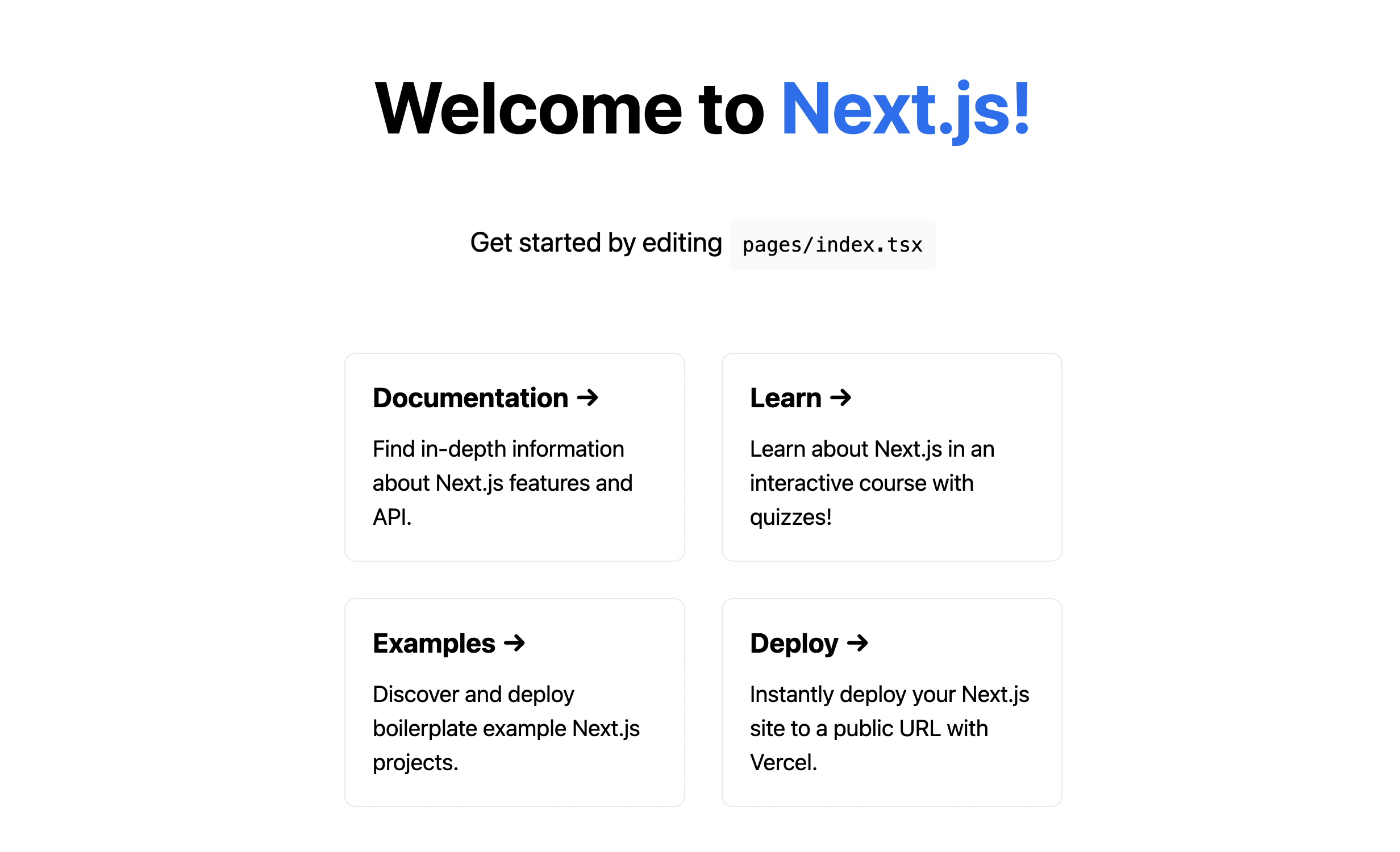 $ npx create-next-app@latest --ts作成したプロジェクトに移動して、開発サーバーを立ち上げます。