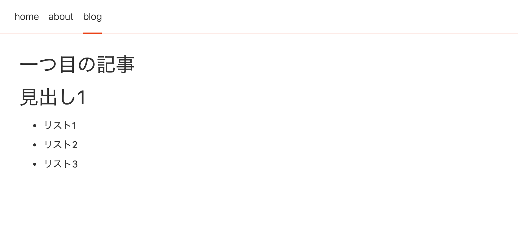 すでにhome、about、blogのページが用意されているので、今回はblogの部分を拡張していきます。