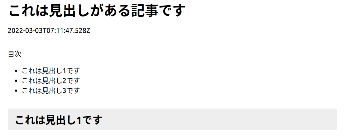 }ブラウザで確認するとこのようになります。タイトルの下に目次を作成することができました。