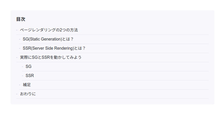 本記事ではNext.jsで目次機能を実装していきます。以前に書いたmicroCMS + Next.jsでJamstackブログを作ってみようの拡張版になります。本記事はこのチュートリアルを終えてる前提で話を進めていきます。