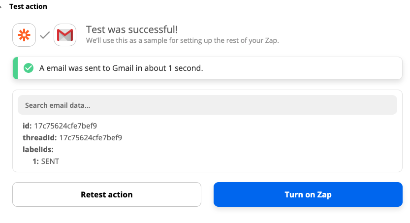 メールの内容に問題がなければTurn on Zapを押してすべての設定を有効化しましょう。