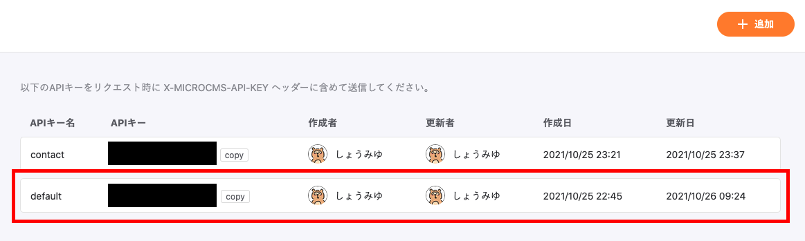 'X-MICROCMS-API-KEY': 'yourapikey', // 作成したAPI-KEY