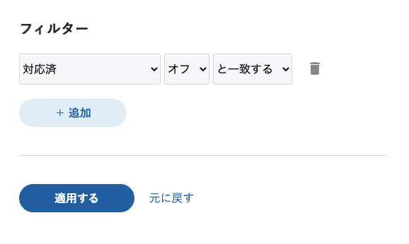 対応済みかどうかの真偽値のAPIスキーマを追加して、フィルター機能で一覧から除外してみましょう。
