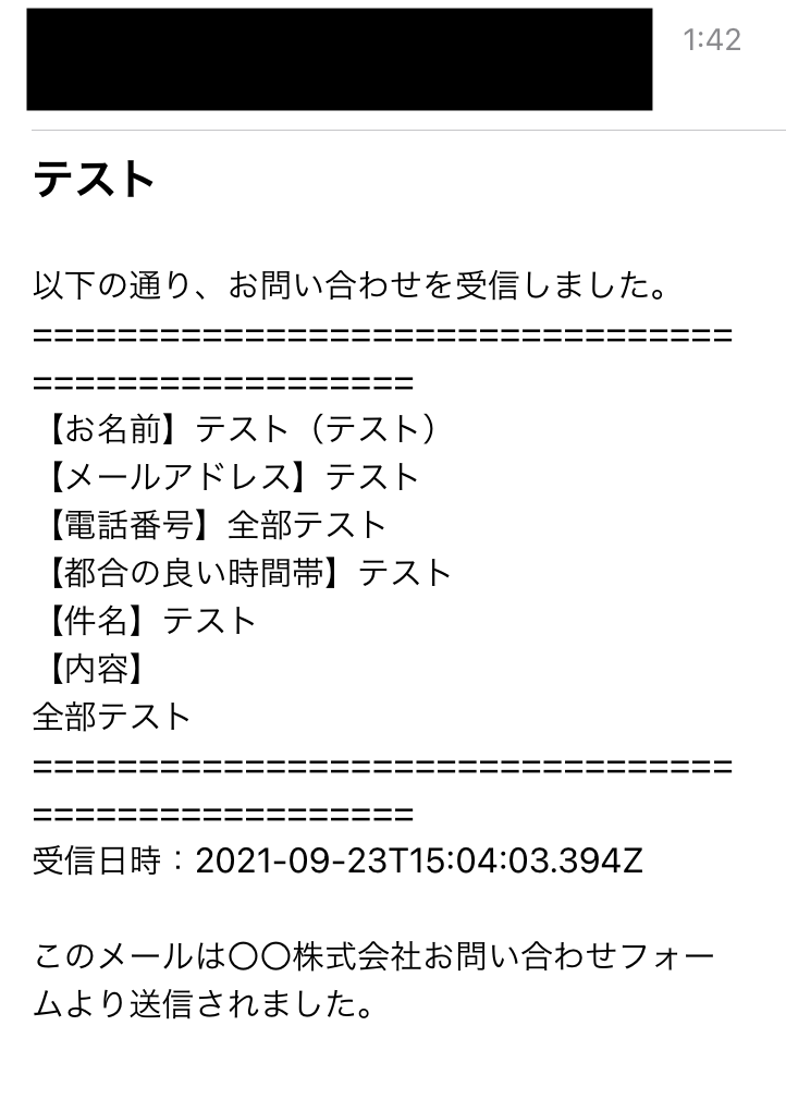 下記のように表示されたら、Toで設定したメールアドレスにテストメールが届きますので内容を確認してみてください。