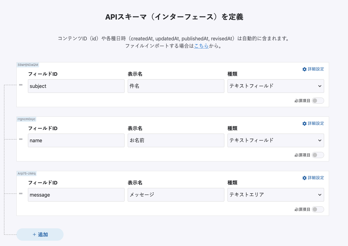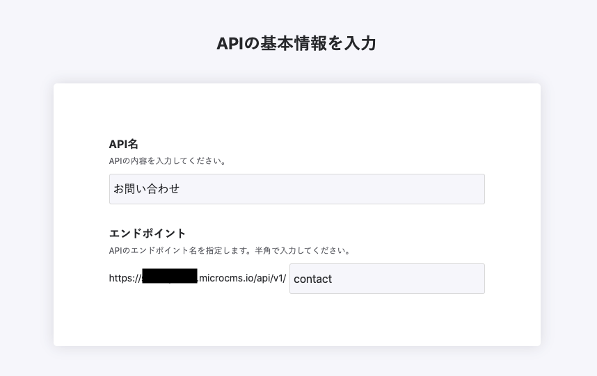 まずはmicroCMSでお問い合わせを受け取るための新しいAPIを作成します。