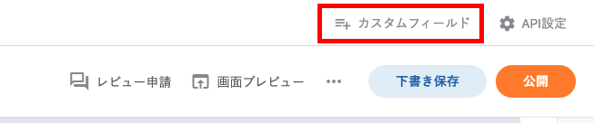 今回はブログページ下部に設置するので、ブログの管理画面の上部から『カスタムフィールド』を選択し、新しいカスタムフィールドを作成しましょう。
