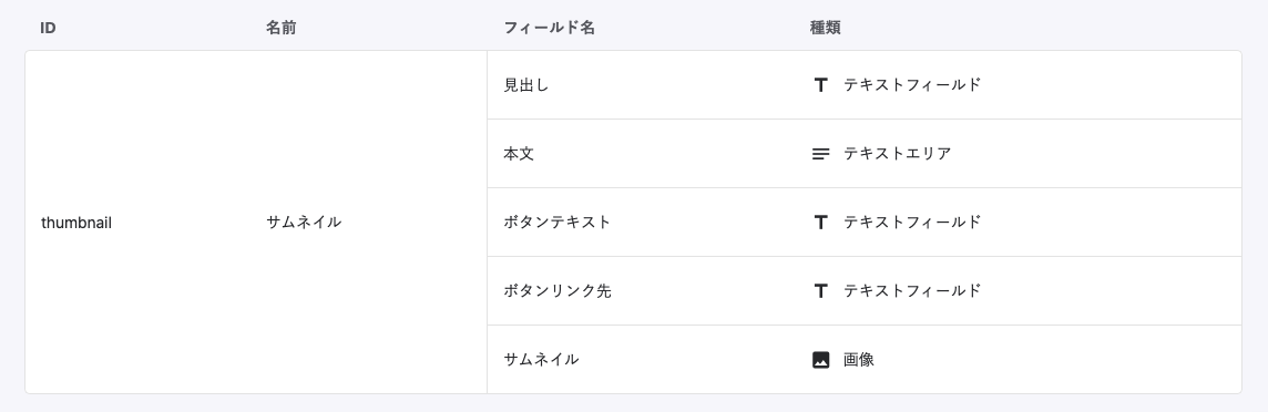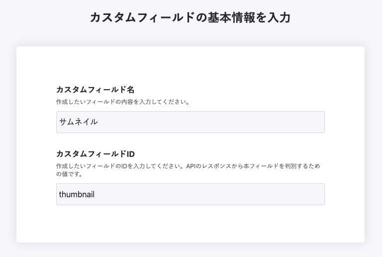 カスタムフィールド名に『サムネイル』、カスタムフィールドIDに『thumbnail』としました。