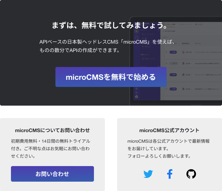 <h3 class="subTitle">microCMSについてお問い合わせ</h3>