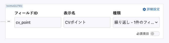 最下部にcv_pointという名前で繰り返しフィールドのスキーマを追加しました。