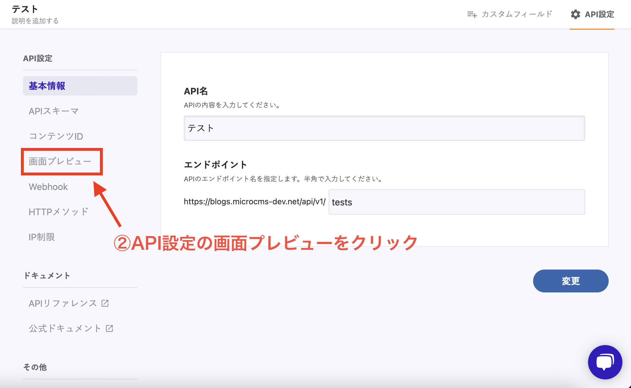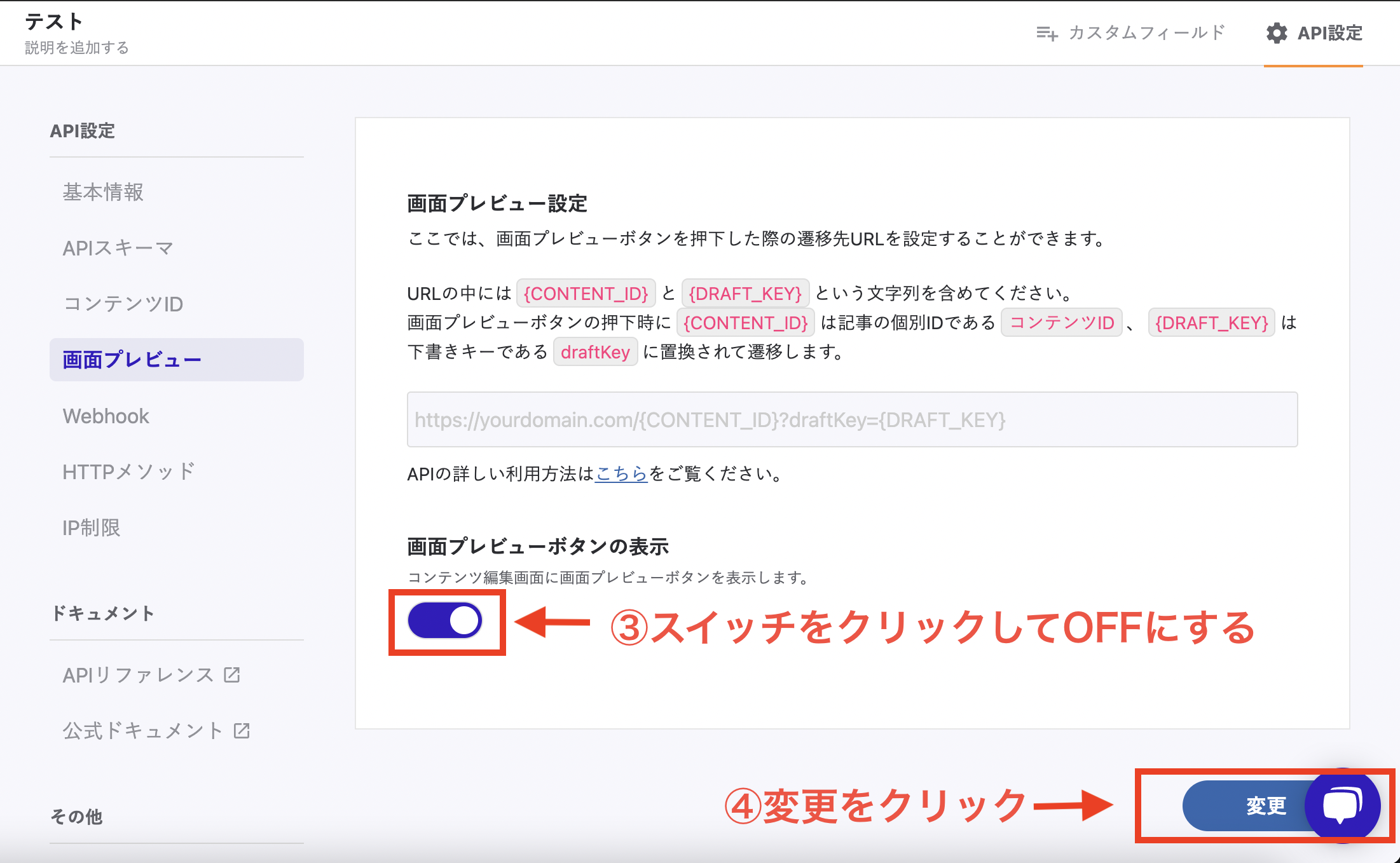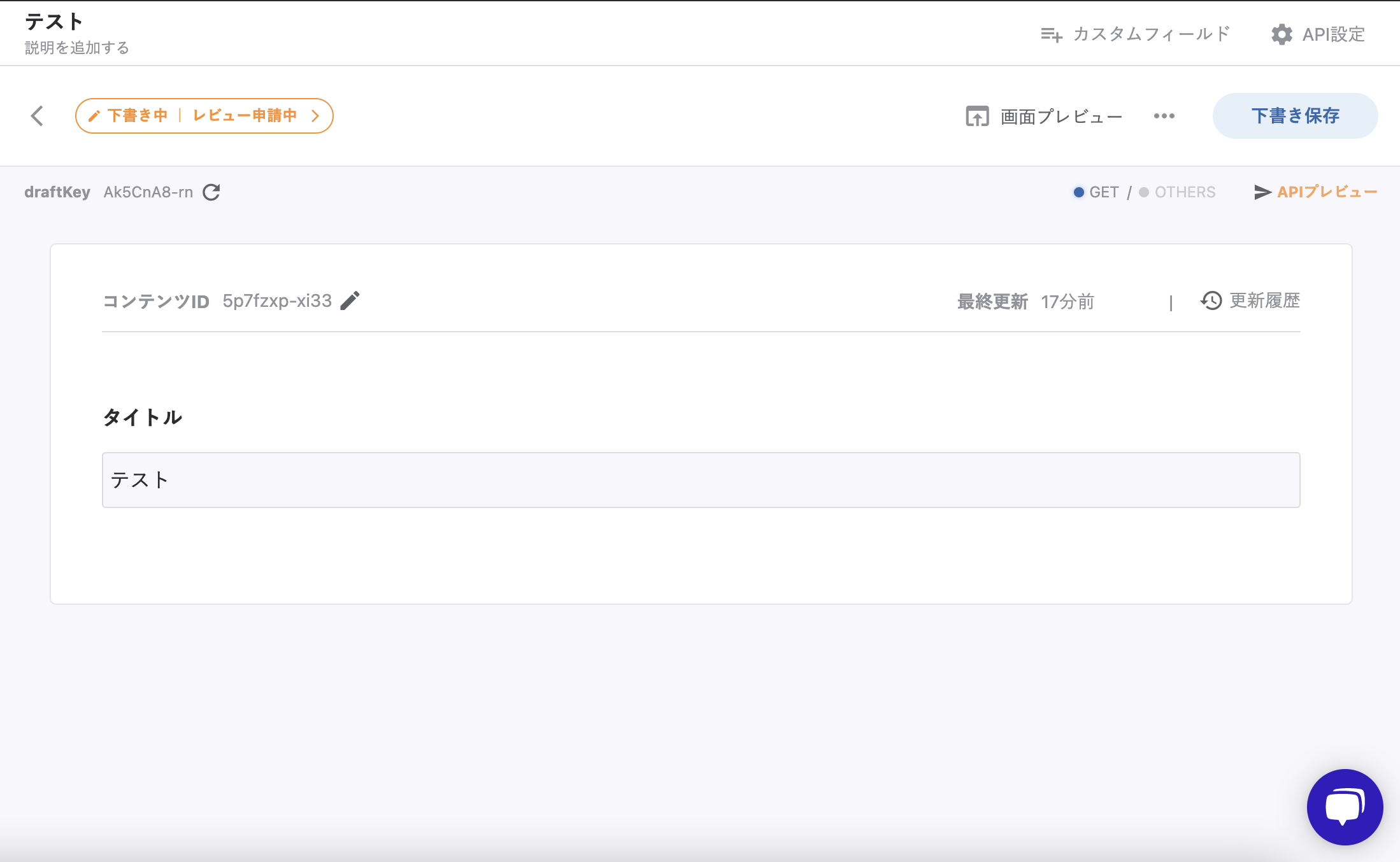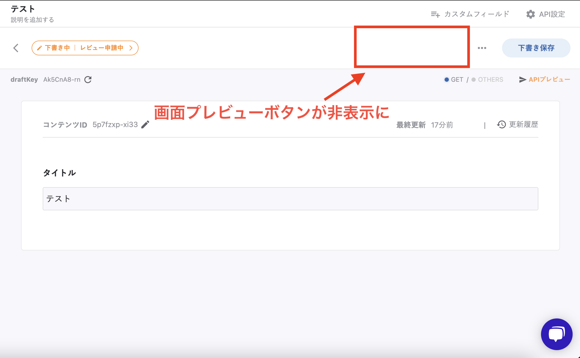 変更ボタンをクリックすると、設定がコンテンツ(API)の編集画面とレビュー画面に反映されます。